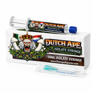 Dutch Ape is a modern Psilocybe cubensis hybrid combining the robust genetics of Mexico Dutch King (MDK) with the distinctive albino phenotype of Albino Penis Envy (APE).